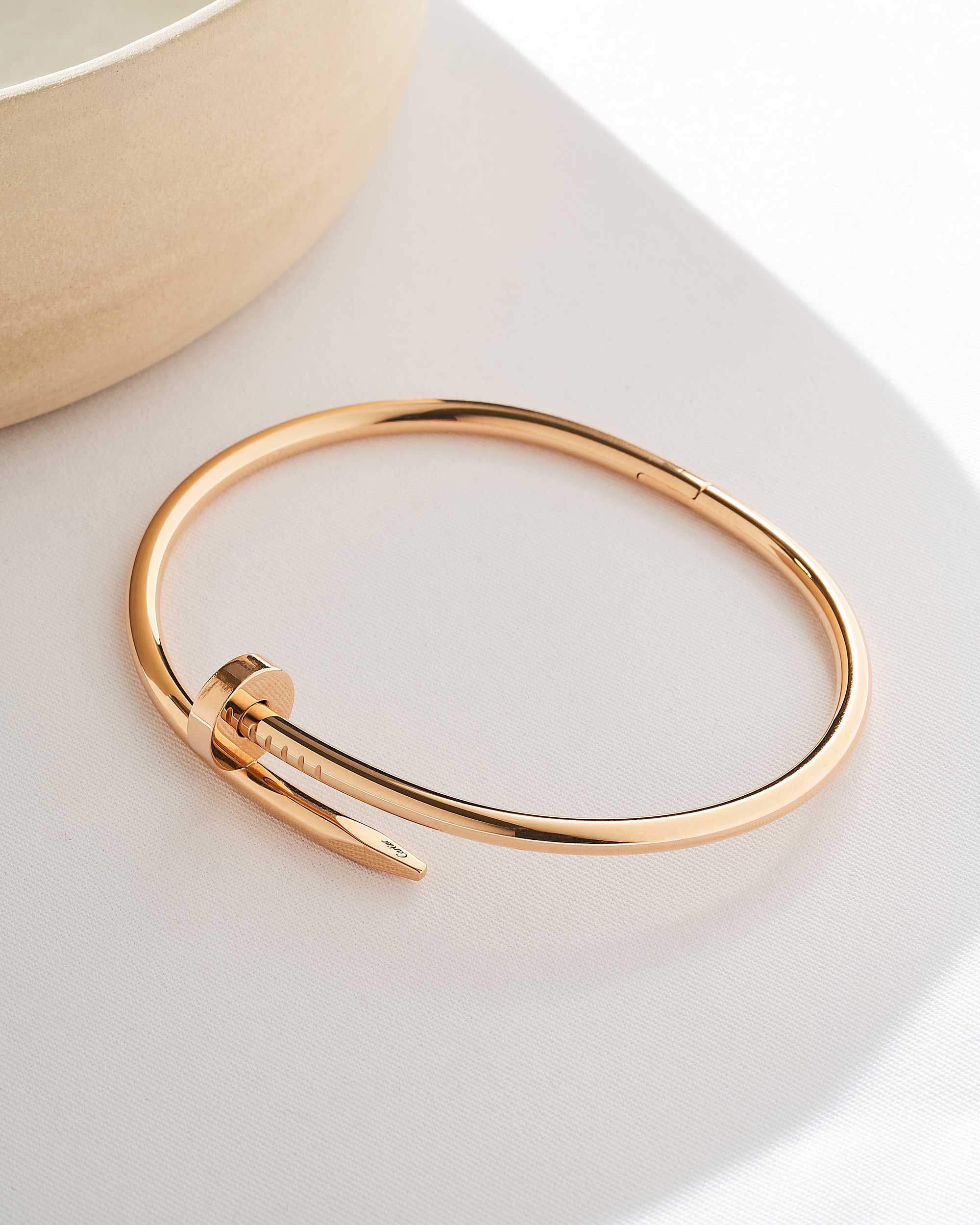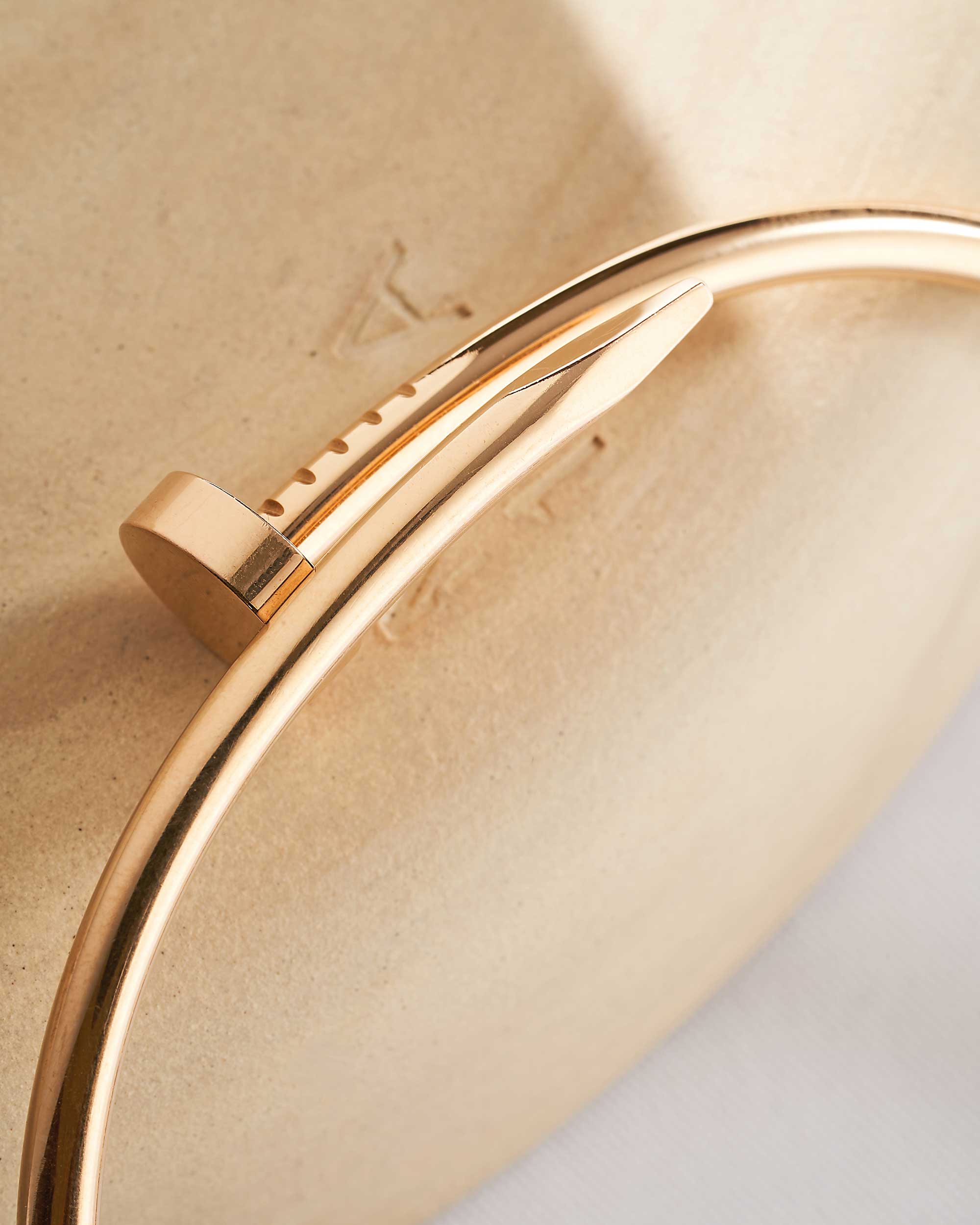 Das Design des Juste un Clou Armreifs ist nicht nur ein Symbol für Luxus, sondern steht auch für Rebellion und Unabhängigkeit. Cipullo schuf dieses Schmuckstück in den 1970er Jahren als Ausdruck des Nonkonformismus, der sowohl stark als auch subtil zugleich ist. Der Armreif spricht Menschen an, die Selbstbewusstsein und Originalität schätzen und ein starkes modisches Statement abgeben möchten.