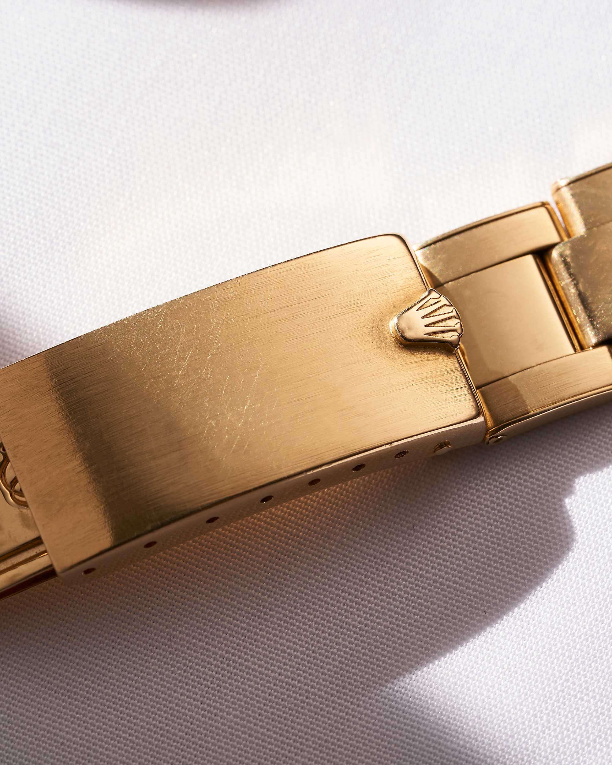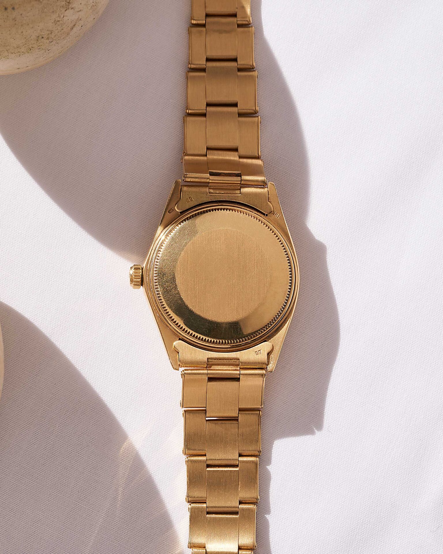 Die Rolex 1503 ist mit einem Oyster-Armband in 18k Gelbgold geliefert, was dem Modell eine luxuriöse und zeitlose Ausstrahlung verleiht.