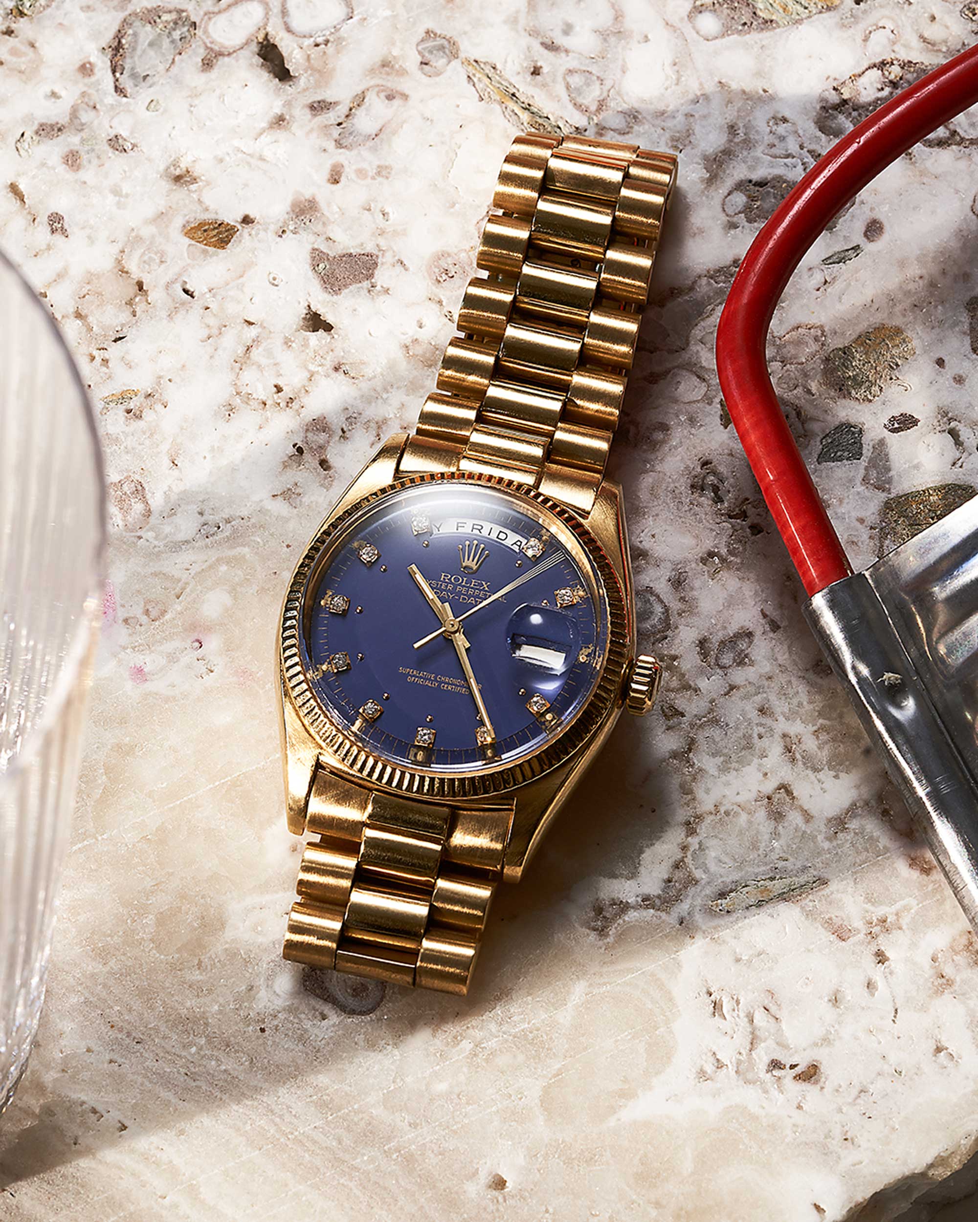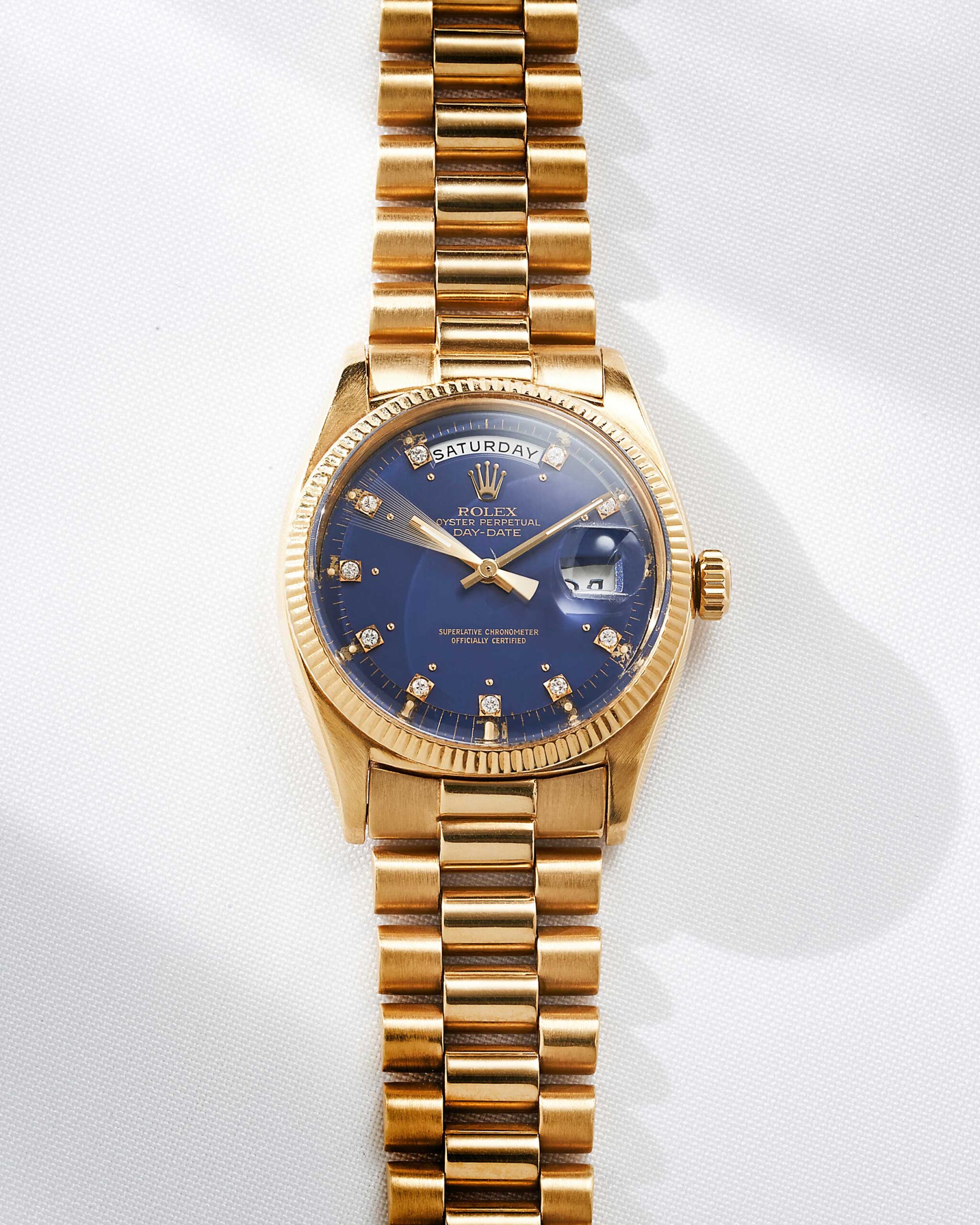 Die Rolex Day-Date, auch als „Präsidenten-Uhr“ bekannt, wurde 1956 eingeführt und war die erste Armbanduhr, die sowohl das Datum als auch den Wochentag in voller Länge anzeigte. Diese bahnbrechende Innovation machte die Day-Date zu einem Symbol für Prestige und Stil und wurde schnell zu einer Ikone in der Uhrenwelt.