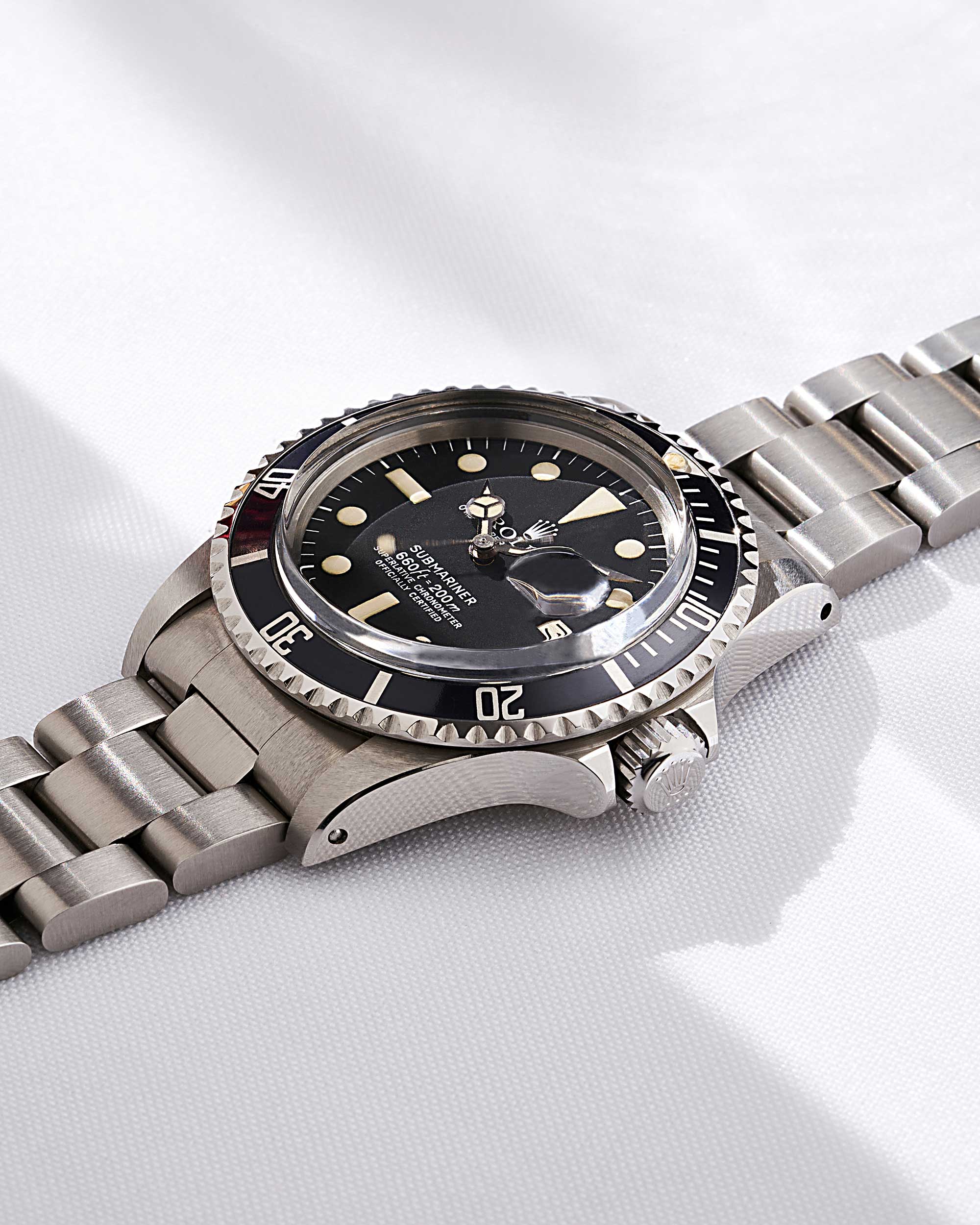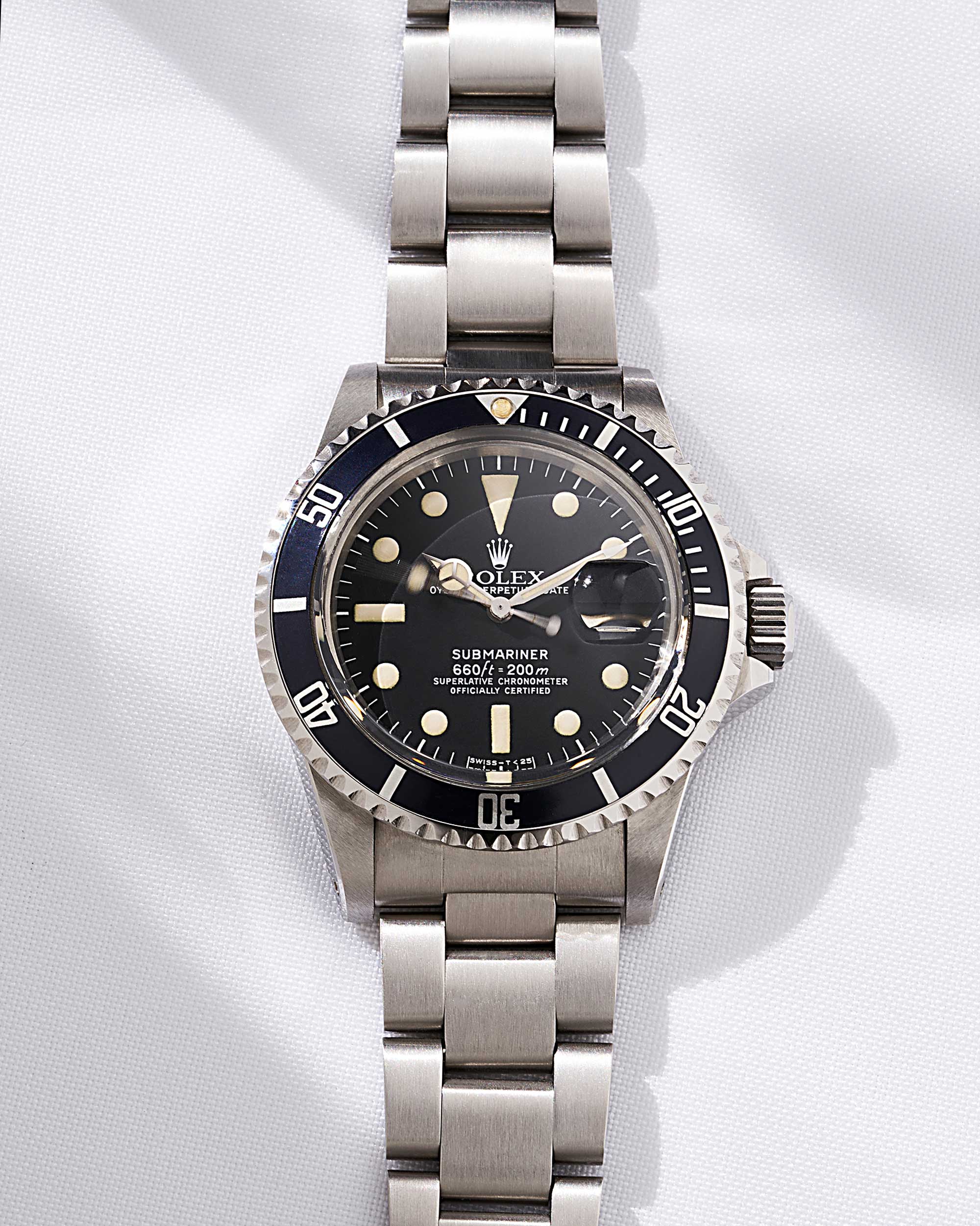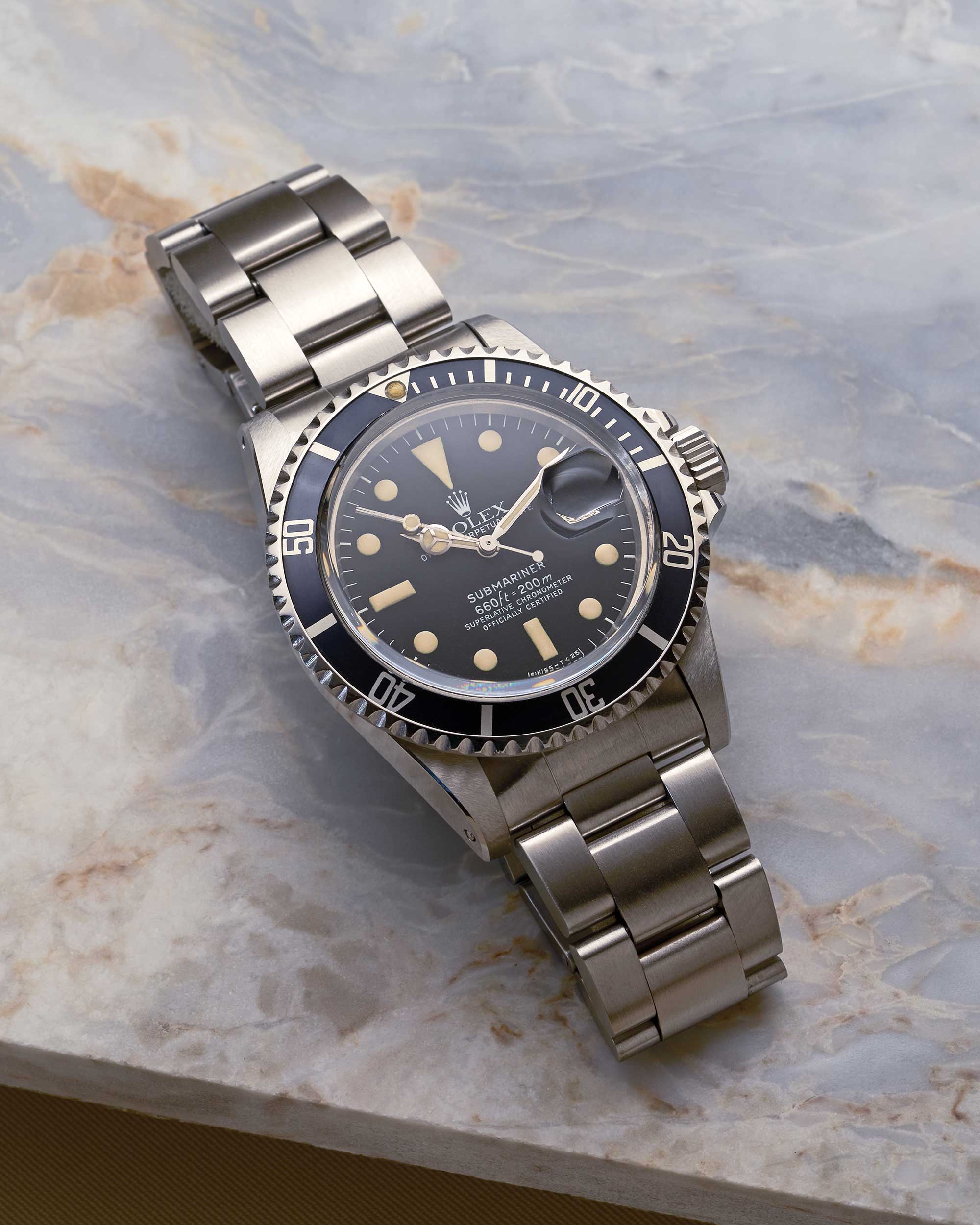 Rolex Submariner in Edelstahl mit schwarzem MK1 Zifferblatt, Plexiglas und Oyster-Band aus 1978, 5,7 Mio-Serie