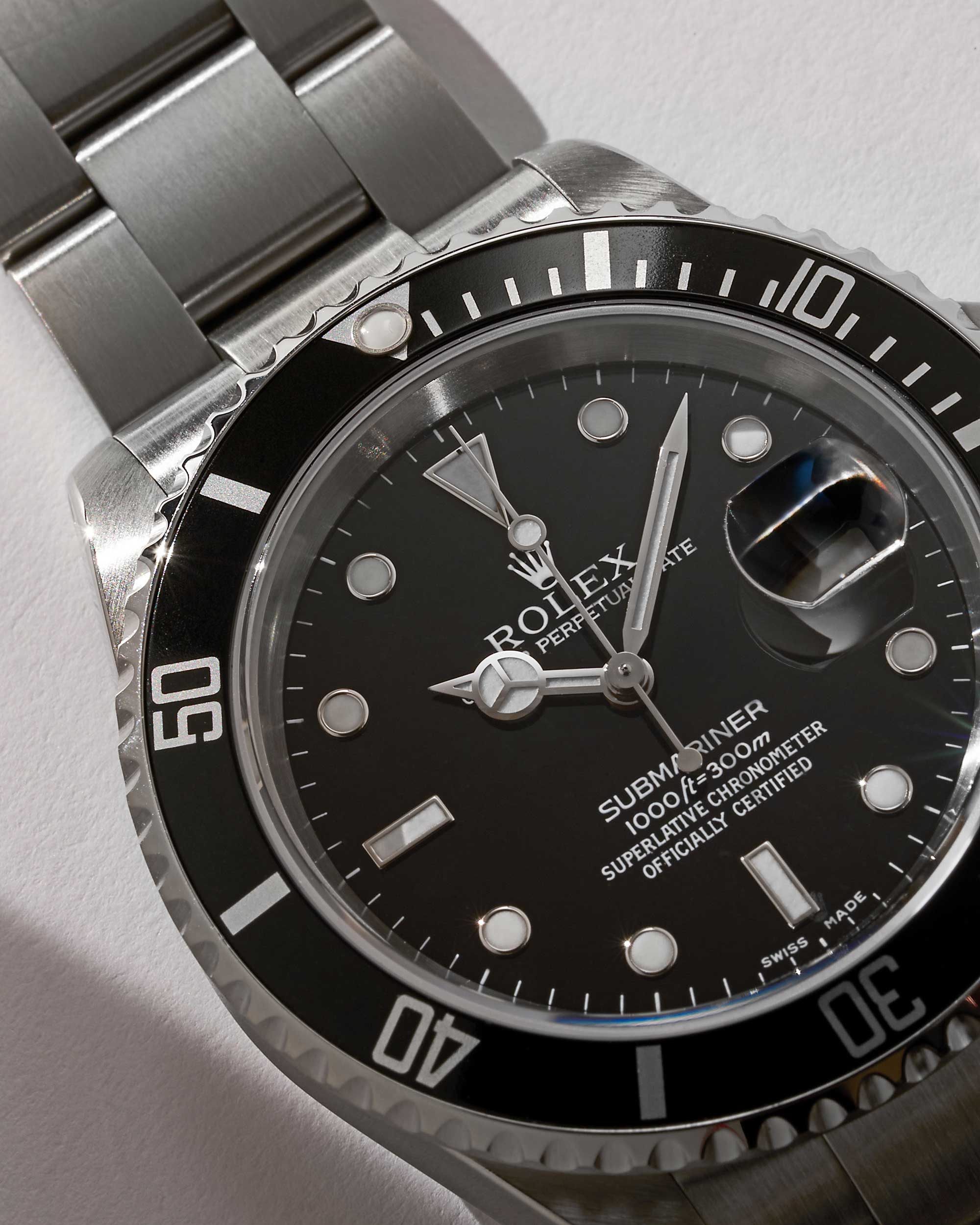 Rolex Submariner Date in Edelstahl mit schwarzem Zifferblatt mit Travel Case & Certified Pre-Owned Papieren aus 2023, Baujahr 2002