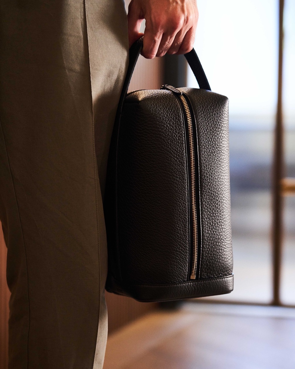 Die schlichte und solide „CHITARRA“ Travel Bag ist durch den Tragegurt gleichzeitig nutzbar als klassischer Kulturbeutel für Reisen oder auch als kleine stilsichere Herrentasche.